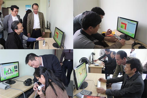 ②洪泉益董事長為王豫生主任等相關領導介紹泰好康有氧音樂放松系統”(圖6)