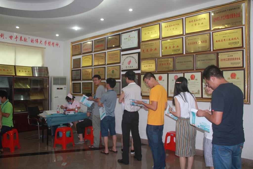 此次員工體檢活動(dòng)地點(diǎn)設(shè)在公司展廳舉行,由泉州某醫(yī)院進(jìn)行體檢。體檢內(nèi)容包括內(nèi)科、外科、五官科、血常規(guī)、肝功能、尿常規(guī)等項(xiàng)目。