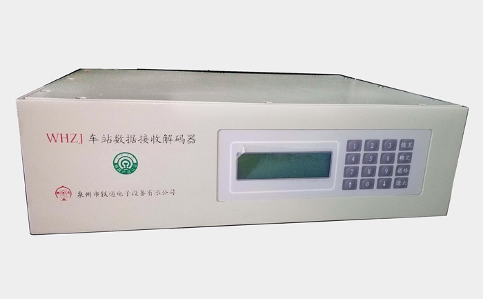 WHZJ車站數(shù)據(jù)接收解碼器是無(wú)線車次號(hào)校核系統(tǒng)中的車站設(shè)備,它由數(shù)據(jù)接收解碼器主機(jī)、連接電纜、全向天線、饋線、交流電源線、直流電源線等組成。通過(guò)與TDCS系統(tǒng)設(shè)備配套使用,可實(shí)現(xiàn)機(jī)車車次號(hào)數(shù)據(jù)接收并傳輸,同時(shí)并在本機(jī)顯示當(dāng)前接收到的車次號(hào)及機(jī)車號(hào)等內(nèi)容。