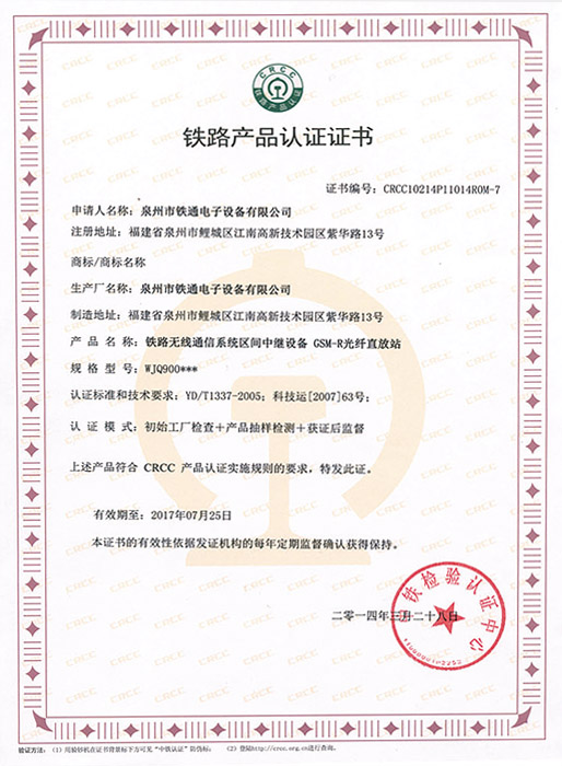 WJQ900型GSM-R光纖直放站具有高線性、低功耗、適應弱場區間多種安裝方式、靈活組網等特點。系統具備強大遠程和本地網管功能,實現對所有設備實時狀態可查可控。遠端設備滿足交流、遠供或太陽能供電方式。產品已取得CRCC鐵路產品認證證書。